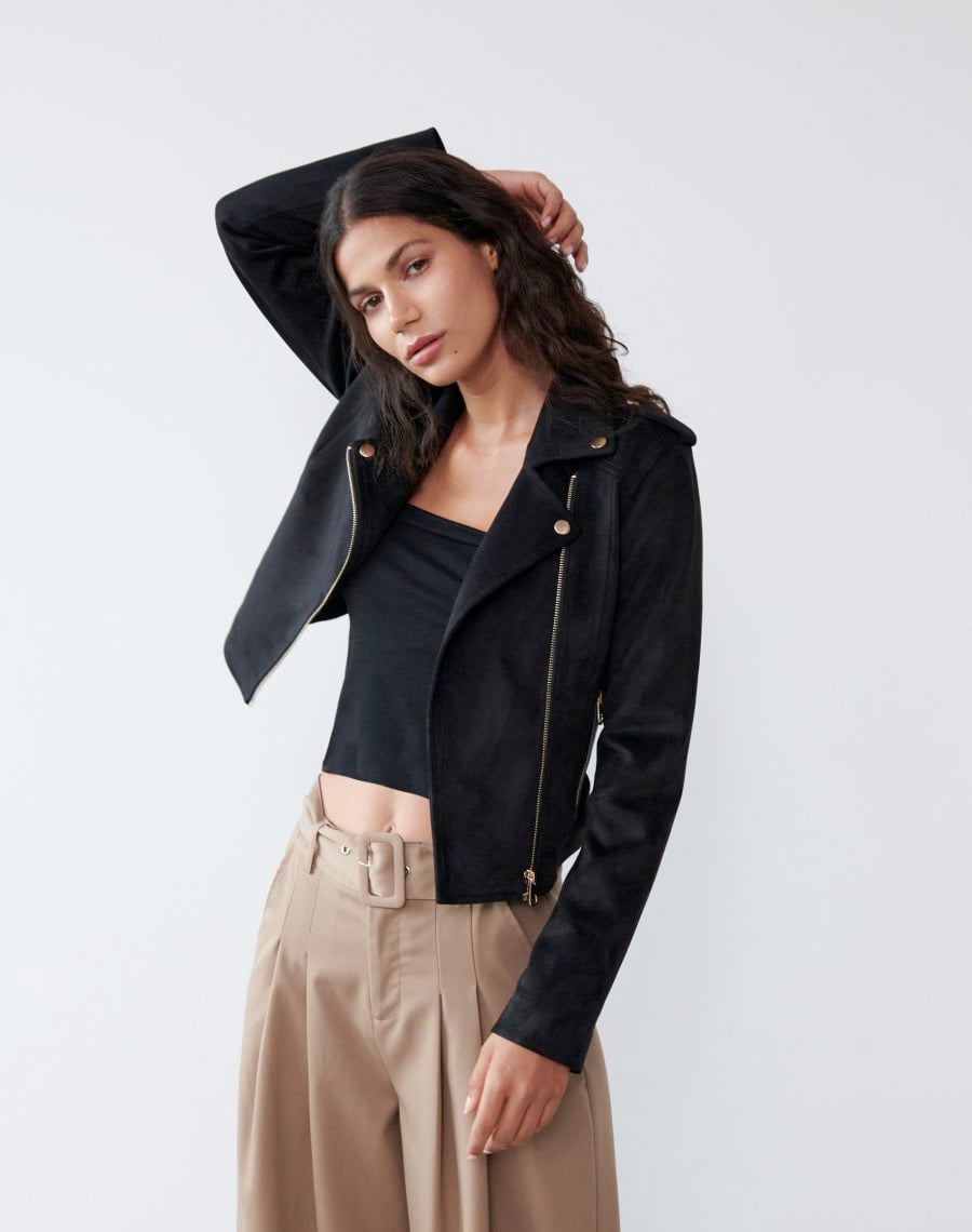 HomeProduct GalleryWomenBlousesFaux suede biker jacket